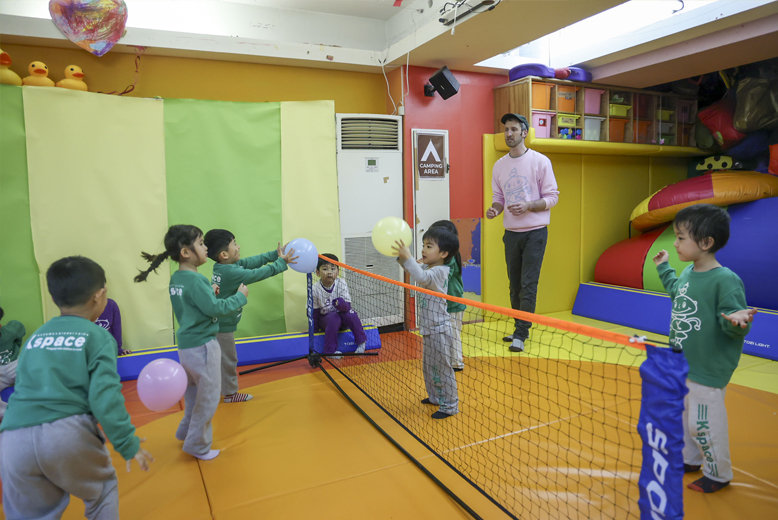 In this class, children play a variety of balloon volleyball games and challenges. Through playful matches and cooperative activities, students practice sending the balloon over the net, working together with teammates, and staying active.